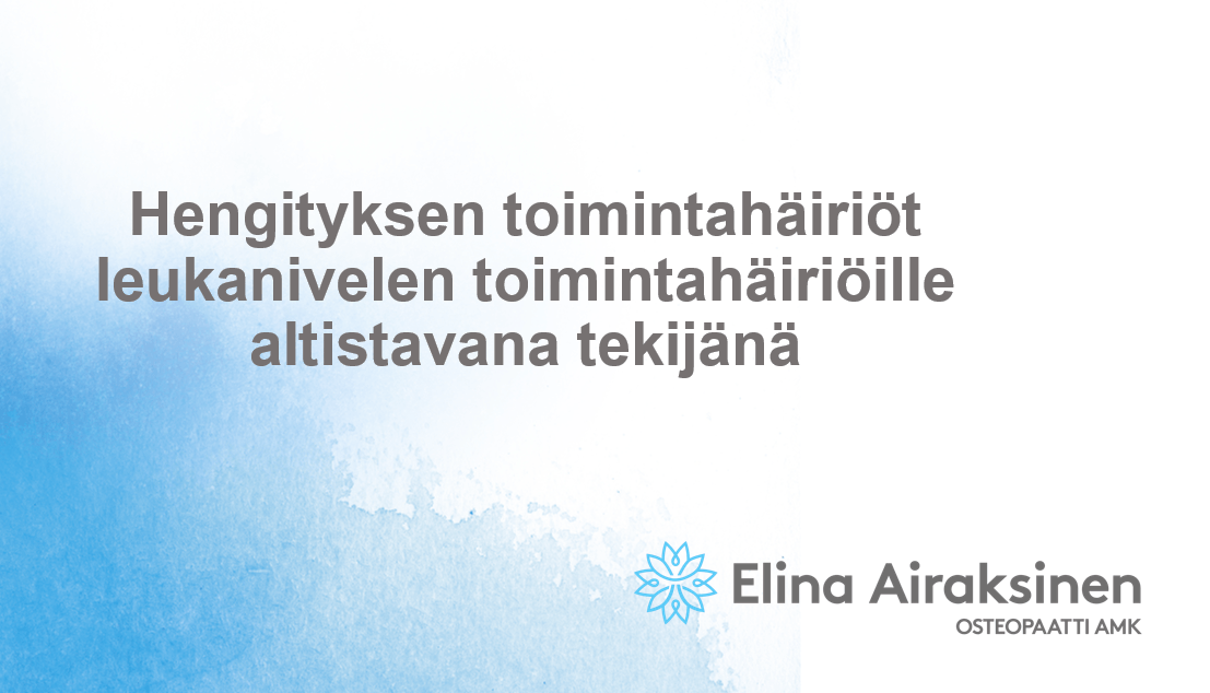 Kipuiletko purentaelimistön ongelmien kanssa? Vai työskenteletkö ihmisten parissa, joilla on purentaelimistön ongelmia? Tiesitkö, että hengityksen toimintahäiriöt voivat pahentaa purentaelimistön toimintahäiriöitä ja päinvastoin?